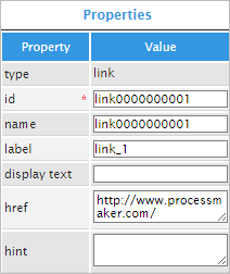 Links in ProcessMaker 3 have the following field components: