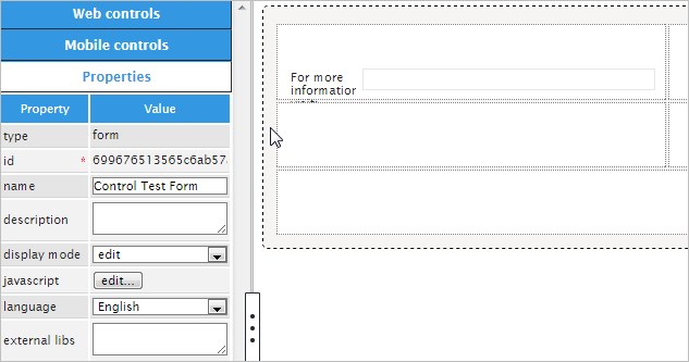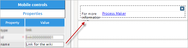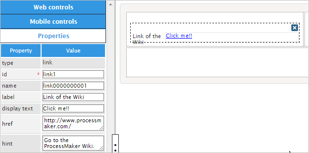 Now, the "label" property will change the name of the control. Instead of having "link_1" the name of the control can be: "For more information visit". Observe the image below.
