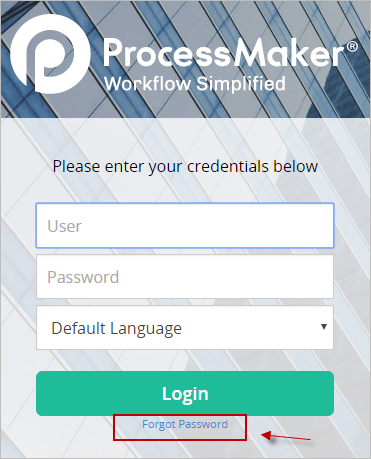 The next time a user logs into ProcessMaker, the Forgot Password link will be displayed in the login screen.