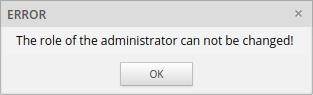 Note: The Role field of the System Administrator is set to PROCESSMAKER_ADMIN by default. This field cannot be changed; otherwise, the following alert will be displayed.