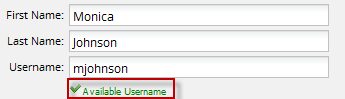 Username: The account name that will be provided when the user logs into the system. Usernames can contain letters, numbers and underscores. Usernames are not case sensitive when logging in.