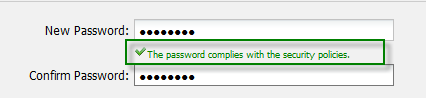 - New Password: A string of at least 5 characters, which can include spaces and symbols. If the second password doesn't match the first password, or the passwords don't meet the set requirements, then a red error message will appear:
