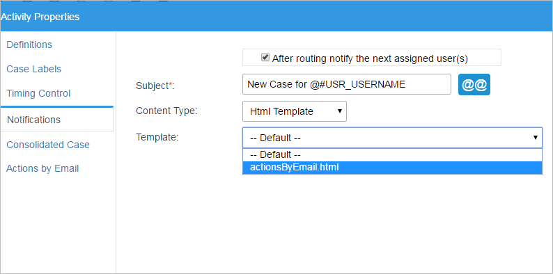 The subject line and body of these email notifications can be customized, and system variables and case variables can be inserted to personalize the email for the recipient using data from the current case.