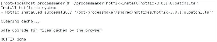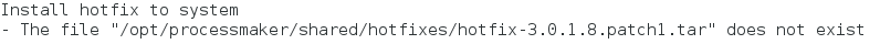 Before installing, make sure that the hotfix or patch .tar file is placed at <INSTALL-DIRECTORY> > opt > processmaker > shared > hotfixes.