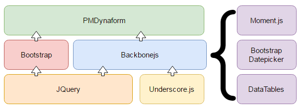 - JQuery, used mainly to consume services and for DOM manipulation. It is a requirement for Bootstrap, JavaScript and plugins, and it is also used in Backbone views for DOM manipulation.