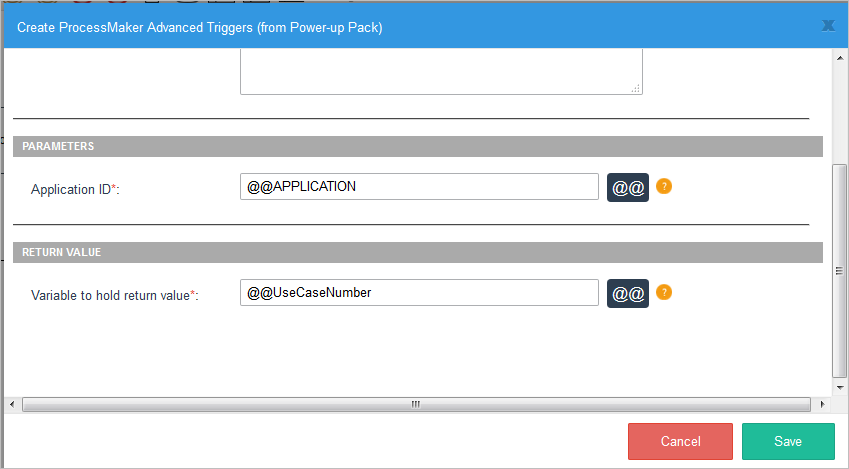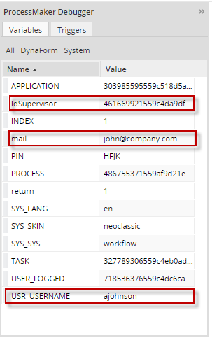• string appUid: The unique ID of the case. To get the case number for current case, use the system variable @@APPLICATION.