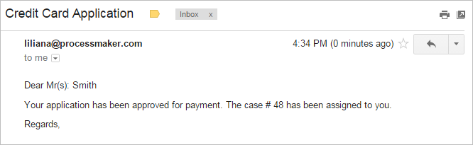 @@return = PMFSendMessage (@@APPLICATION,'liliana@colosa.com','liliana@colosa.com','','','Credit Card Application','template.html',array(),array(),true,0);
