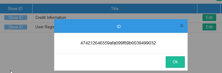 This example obtains a list of all the textbox fields in a Dynaform. First, get the unique ID for the Dynaform. Open the process which contains the Dynaform and go to the DYNAFORMS tab. In the list of Dynaforms, click on the Show ID button for the Dynaform.