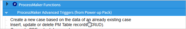 The PowerUp plugin includes 12 extra functions, which improve the generation of PDF documents, the loading of data inside a grid, the reassignment the cases of a user who is on vacation, and more. These extra functions make coding triggers easier and simpler, since they allow process designers to avoid using complicated internal classes and complex database queries.
