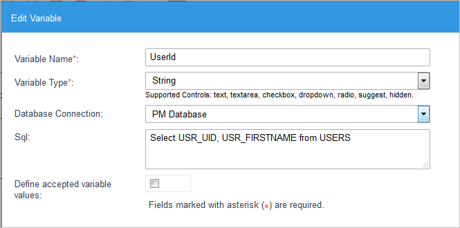 Then, inside the dynaform (in this case, the corresponding dynaform of the Expense report will be Cash Travel Advanced), create a hidden variable named IdSupervisor, there we will save the Supervisor ID that will be used in the trigger. In the following example, we will obtain the role the user belongs to, so, just create a Dynaform with a field name Usr_Role.