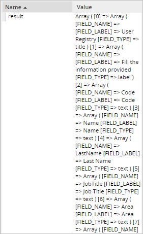 array. It returns data as a numbered array of associative arrays, where the keys in the associative arrays are the names of the fields in the grid. This is the same way that grids are represented in ProcessMaker: