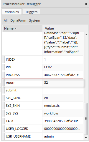 When checked in the the ProcessMaker debugger, a new case, whose case number is 32, was created: