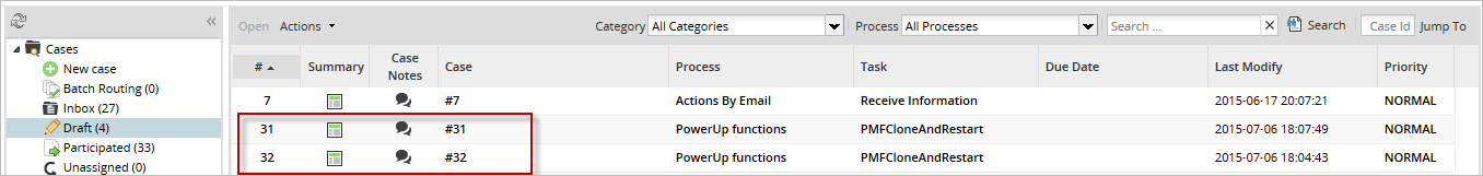 PMFCloneAndRestartCase() makes an identical copy of a specified case, including all the data generated in the case. The copy of the case will be stored in the DRAFT folder. The status of the original case can changed to CANCELLED or PAUSED.