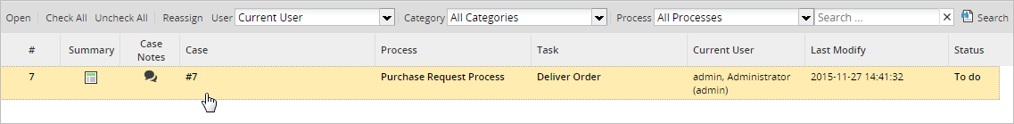 - Actions: where the supervisor can pause and cancel. Supervisor users can reassign a case only if the PM_REASSIGNCASE permission was added to their role.