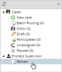 Note: A bug currently prevents Process Supervisors from seeing cases that are in their first task under Home > Review. Once the case moves to the second or subsequent tasks, the cases will be visible in the list.