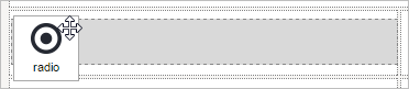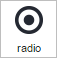 A radio (group) control offers only a binary on/off option. It is round and a black dot appears in the middle when activated (on). A radio group control is used instead of a checkbox or checkgroup control, when the user must select only one option from a domain of choices. Its icon in the tool panel of the DynaForm designer is the following: