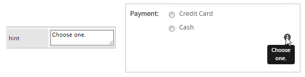 | Hint | Used to show help when the radio is rendered. It is shown when the pointer of the mouse is hovered over the ? icon. |