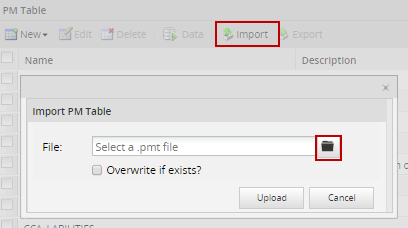 - Overwrite the existing Table: The existing PM Table will be overwritten by the imported one.