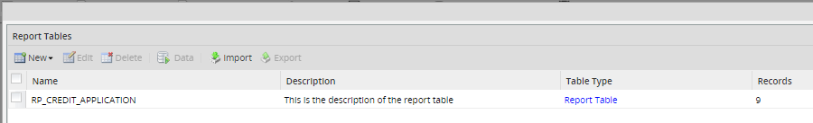 It is also possible to import a Report Table by going to Admin > Settings > PM Tables and selecting the Import option in the toolbar.