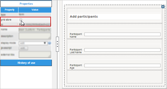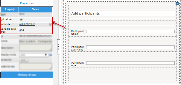 | Grid Store | This property allows a grid variable to be related to a subform field, so many instances of the same subform