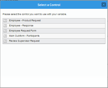 Immediately after the control is added a window will appear where all the Dynaforms created can be found. Select one of the Dynaforms to be a subform.
