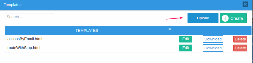 Remember that it is only possible to upload files with the .html extension. The files uploaded will be listed among the other templates created inside ProcessMaker, and it is also possible to modify their content with the editor.