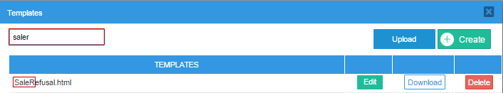 4. Template: This column lists the names of the templates already created or uploaded in the process. Click on the arrow at the right side of the name of the column to sort the list in ascending or descending order. Notice that all the templates are shown with the .html file extension.
