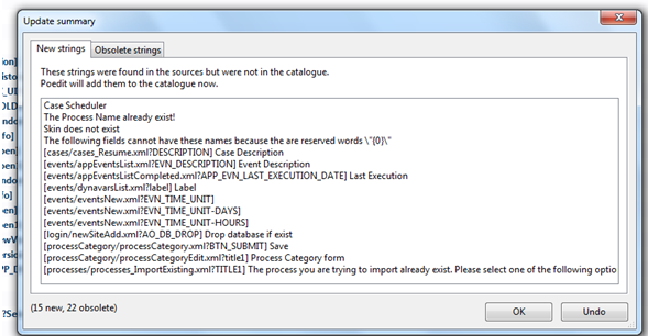 4. All labels in both files will be compared and the new and obsolete strings will be displayed in the window below: