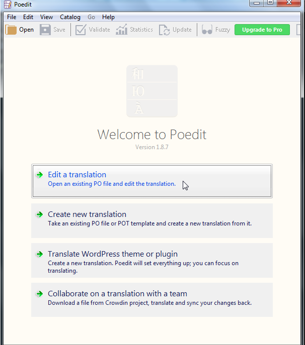 3. Open Poedit and open the file to be translated, then go to CATALOGUE> Update From POT File: