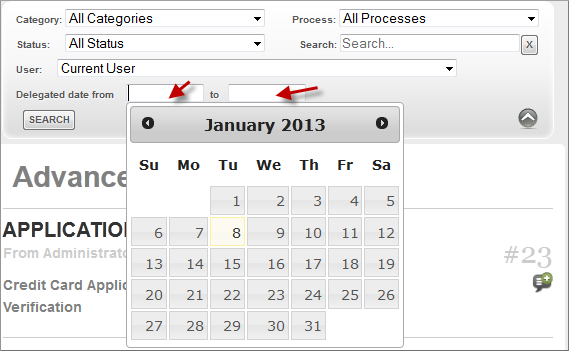 - Delegated date from: To: Select the range of possible dates when the case was routed from a previous task.