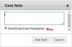 User who add a case note can send an email to all participants of the case to notify them of the new case note.