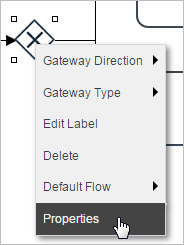Add a condition to a gateway by right clicking on it and then select the "properties" option.