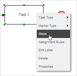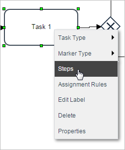 Setting a condition for a Trigger is similar to setting one for other types of steps. First, assign the trigger to fire at a particular point in a task. Then right click on the task in the process map and select the "Steps" option from the dropdown menu.