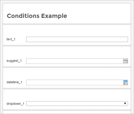 In addition, conditions can be created to show or hide elements in a DynaForm using JavaScript's Boolean logic.