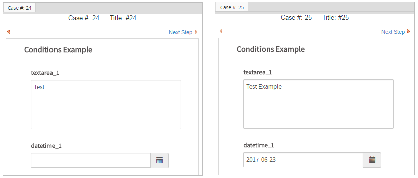 - Using a case variable in a condition from a DynaForm field whose data may not have been submitted. By default, clicking on the Next Step link in a DynaForm will not save the data, so no case variables will be created for each DynaForm field. To fix this problem, set the Next Step Link property for DynaForms to the "Save & Continue" option, so the data will automatically be saved when the user clicks on the Next Step link. If the user should have the choice to whether to save the DynaForm data or not, then fire a trigger after the DynaForm which will create case variables for each of the fields that are used in subsequent conditions. The trigger code would be: