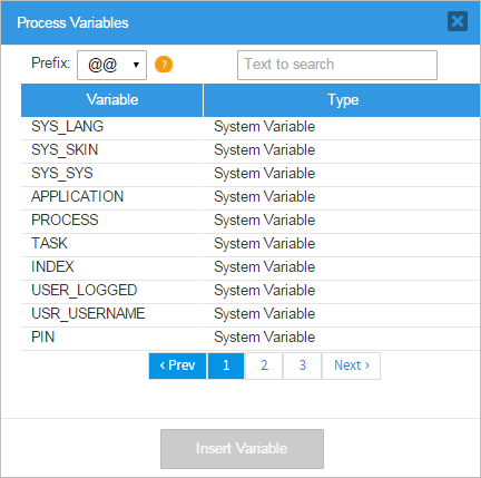 This is the "Process Variables" window where case variables and system variables can be found and added to the condition therefore adding coherence to the process.