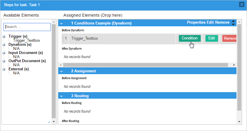 - Using a case variable in a condition before it has been created in the process. Do not use a case variable in a condition, if it is created in a later DynaForm field or defined in a later trigger.
