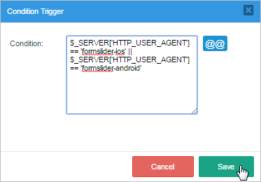 Restrict a Trigger or Step to work only with ProcessMaker Mobile, assign the following condition: