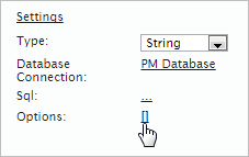 Note: If querying a MySQL database, remember that table and field names are case sensitive by default in Linux/UNIX systems, but case insensitive in Windows systems (although this can be changed with the lower_case_table_names system setting). For portability of processes between Windows and Linux/UNIX servers, it is recommended to use table and field names in UPPERCASE when querying ProcessMaker databases. - Define Accepted Variable Values. A list of accepted options can be added to string, integer, float, boolean and array variables. These options will be displayed to the user when the variable is associated with a dropdown box, radio button, suggest box, checkgroup (or checkbox before v.3.0.1.4) in a DynaForm. Check this option and a new section will be displayed below where options can be added with key (value) and label pairs. These options will be added first to the list, before any options which are added by the SQL query. Note that this is the default list of options and it can be modified in the definition of each control which is associated with the variable.