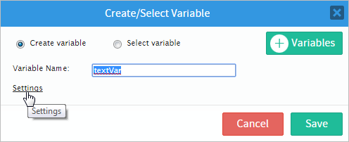 The "Settings" available for the creation of variables are the following: