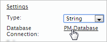 The "Database Connection" setting displays a connections already established with a Database or if empty create a new one. Read more about Database Connection on this section