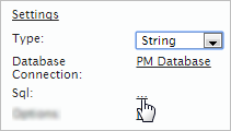 SELECTstatement to populate the variable. Note that this statement is the default for controls which are associated with the variable, but this statement can be modified in the definition of each control. Do NOT include the name of the database in the query, since the query will be executed in the selected Database Connection (3). The SQL query is executed when a DynaForm is displayed which contains a control associated with the variable. If the SQL query contains a reference to an independent field (@@fieldIdor@#fieldId), then it will be executed every time the value of the independent field is changed by the user.