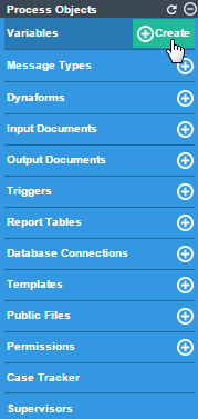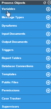 Case variables are variables which are created inside a project and stored exclusively for each case. They are automatically created when a new case is initiated and can be used in any of the objects in a process. Case variables can be defined in the process designer, and can then be used to populate fields in DynaForms and throughout the process in Output Documents, triggers and email templates.