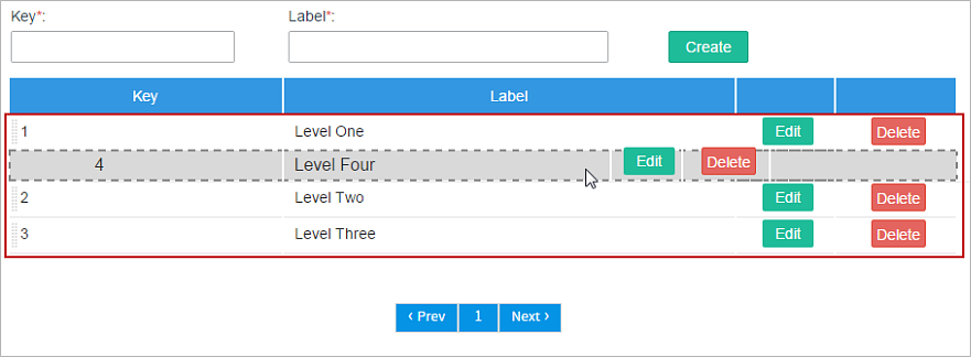 - c. Create. Click on this button to add a new option to the list.