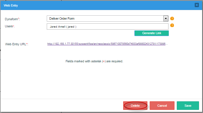 Finally, at the end of the "Web Entry" window, there are three buttons. The "Delete" button, to erase the URL created.
