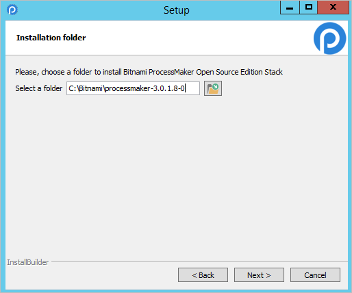 Next, choose the folder destination where ProcessMaker along with Apache, MySQL, PHP and phpMyAdmin (if marked in the previous step) will be installed. To install them in a different location, click on the Browse button and select a directory.