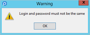 - Password: A string of at least 5 characters, which can include spaces and symbols. Take into consideration that the Login Username and the Password can not be the same.