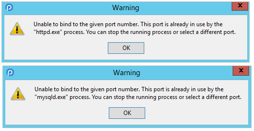 An error message will be displayed if port specified is already in use in both cases.