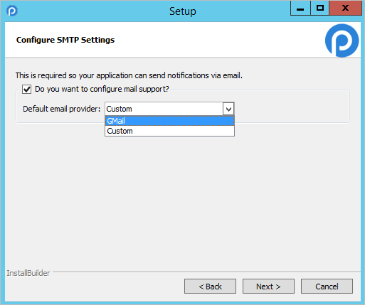 Select the "Custom" option to use an email server which supports the Simple Mail Transport Protocol (SMTP). The following fields must be filled: