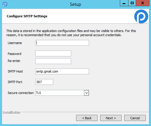 - SMPT Port: The port number used by the email server. Generally port 25 is used, or alternatively port 587. If connecting to the email server with a SSL or TLS connection, generally port 465 is used. If left blank, the default port 25 will be used.